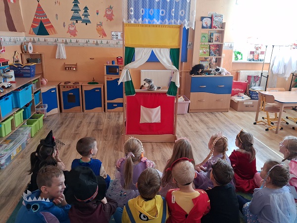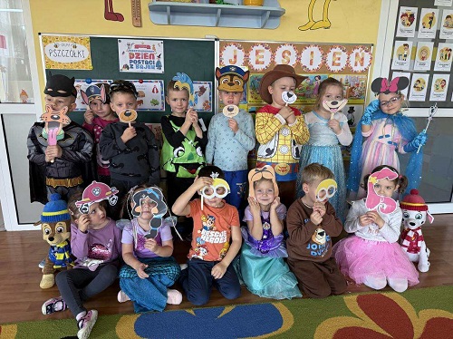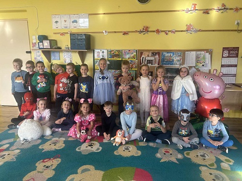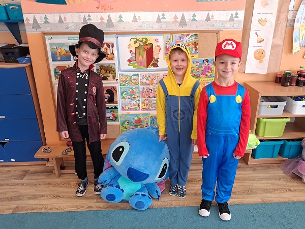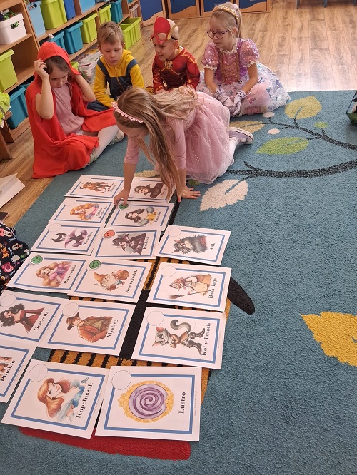 Z tej okazji, 5 listopada nasi wychowankowie wyruszyli w podróż do krainy bajek. Przybyli do przedszkola przebrani w piękne bajkowe stroje. Zabawom, konkursom i tańcom nie było końca. Dzieci rozpoznawały bajkowe postacie i tytuły bajek po rekwizytach. Układały bajkowe puzzle i rozwiązywały bajkowe zagadki, wykonywały bajkowe zadania. Były muzyczne zgadywanki bajkowe, zabawy ruchowe oraz prezentacje dziecięcych przebrań. Dzieci dobrze znają bajki i świetnie radziły sobie z zadaniami.