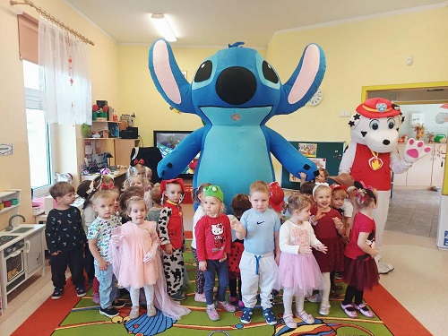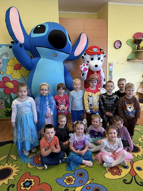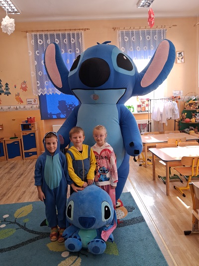 Dodatkową atrakcją tego dnia byli bajkowi goście – Stitch i Marshall – dalmatyńczyk-strażak, zaproszeni specjalnie na ten dzień przez Radę Rodziców z naszego Przedszkola. Bardzo dziękujemy za tak wspaniałą niespodziankę!