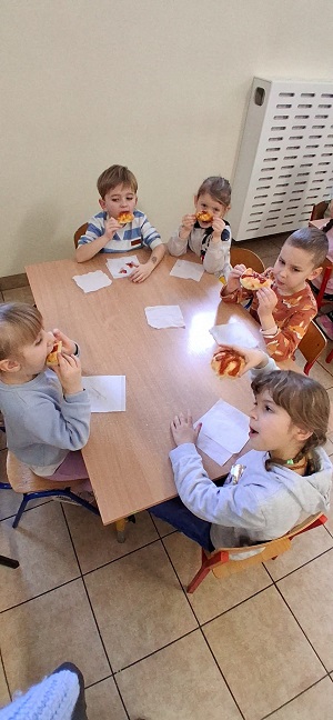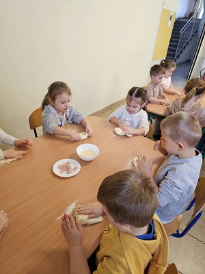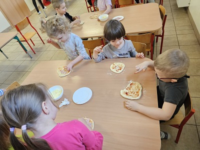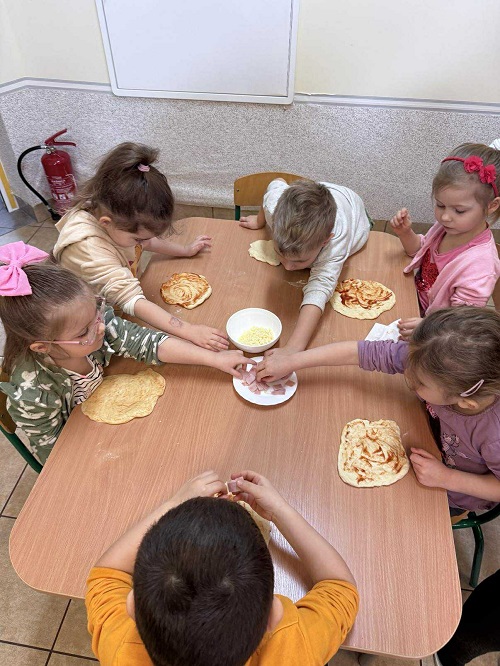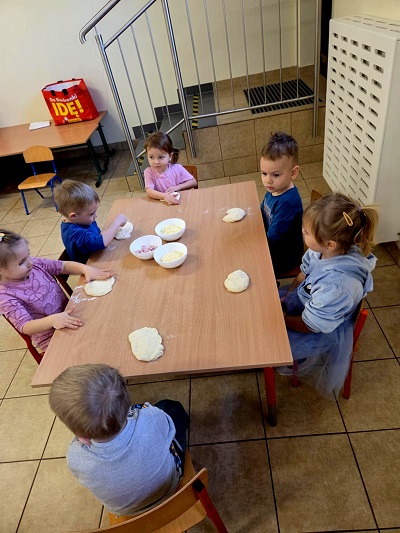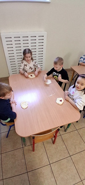W dniach 9, 10 oraz 12 lutego w naszym przedszkolu unosił się pyszny zapach drożdżowego ciasta na pizzę, który od razu wywoływał uśmiechy i pobudzał apetyt.