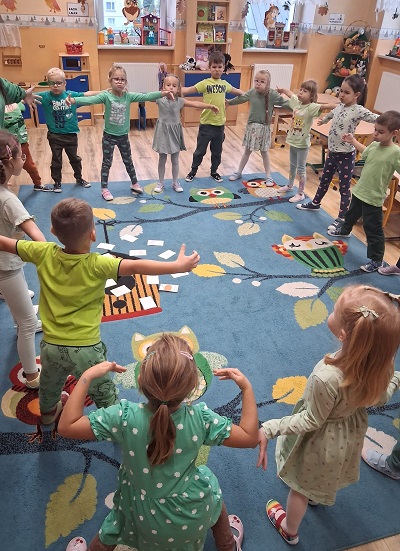 Wspólne zabawy w grupach, wykonanie prac plastycznych były świetną okazją do integracji przedszkolaków oraz wspaniałą lekcją przyrody. ![]()