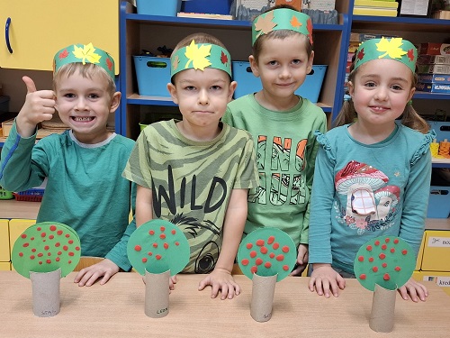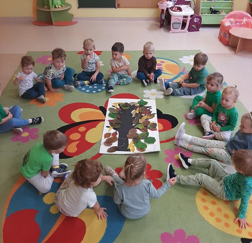 Dzieci poznały ich budowę, etapy wzrastania drzewa, nazwy różnych gatunków oraz zmienności wyglądu podczas czterech pór roku. W czasie zabaw badawczych dotykały liści rożnych drzew oraz ich owoców.