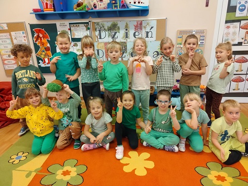 10 października w naszej placówce przedszkolaki obchodziły „Święto Drzewa”. Dzień ten ma na celu zainspirowanie najmłodszych do troski o zieleń, budowanie poczucia odpowiedzialności i obietnicy dbania o drzewa.