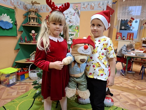 To nie mógł być nikt inny, tylko MIKOŁAJ. Pomimo braku białego puchu, jak co roku przybył na czas. Spotkanie przebiegało w bardzo radosnej i przyjaznej atmosferze. Przedszkolaki śpiewały Mikołajowi piosenki i recytowały wiersze, specjalnie przygotowane na przyjście naszego gościa. Nie zabrakło pamiątkowych zdjęć.