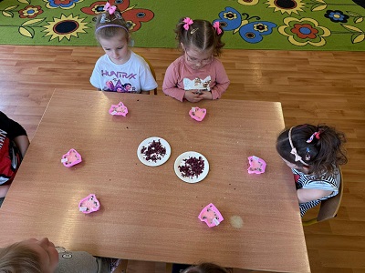 To zajęcia kreatywne, w których brały udział dzieci od „maluszków” do „starszaków” . Podczas warsztatów przedszkolaki samodzielnie tworzyły pachnące i kolorowe mydełka glicerynowe. Dzieci wybierały kształty silikonowych foremek, barwniki, aromaty oraz dodatki, a gotowe dzieła zabrały do domu.