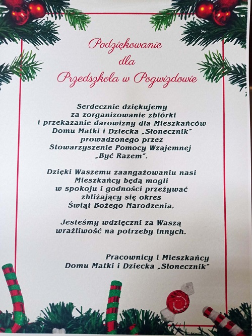 Podziękowanie za udział w akcji charytatywnej „I Ty możesz zostać Świętym Mikołajem”