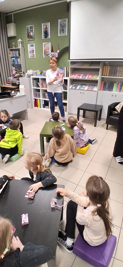 W dniu 9 marca – najstarsze dzieci z naszego przedszkola, tj. grupa „Misie” i „Sówki” zostały zaproszone do udziału w zajęciach bibliotecznych, organizowanych przez Panią Jolantę, nauczycielkę Szkoły Podstawowej w Pogwizdowie.