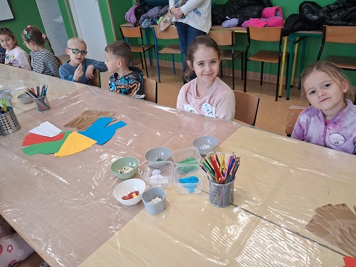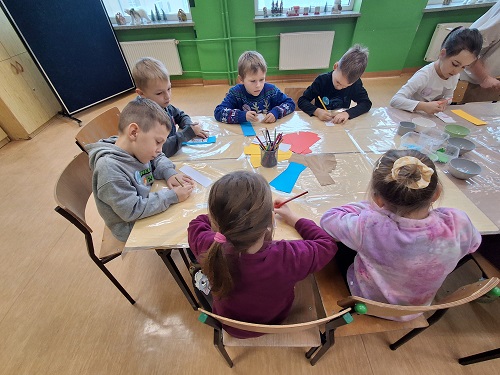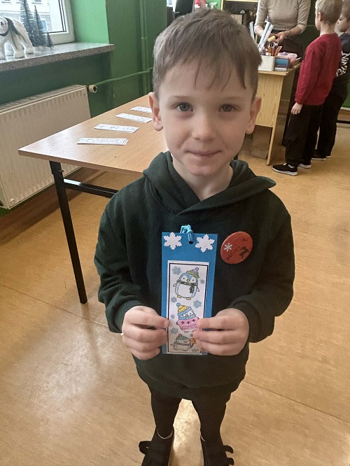 Po bajce przyszedł czas na twórcze działanie. Dzieci wykonały przepiękne, świąteczne zakładki do książek. Każda była inna, pełna kolorów, ciekawych detali – a przede wszystkim pomysłowości i dokładności, które pokazują, jak bardzo 6-latki lubią tworzyć i jak dużo potrafią.