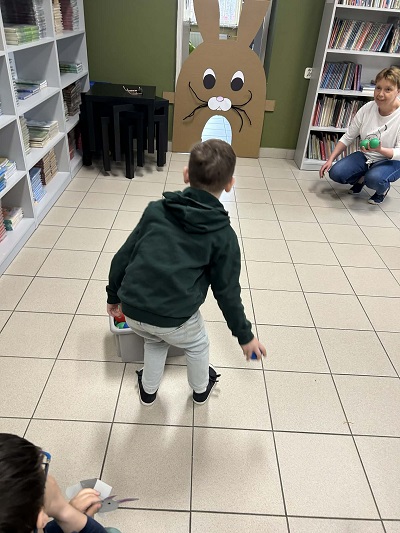 Podczas spotkania nie brakowało śmiechu, dobrej zabawy i twórczej atmosfery. Dzieci tropiły ukryte marchewki- ulubiony przysmak zajączka. Mali uczestnicy z entuzjazmem brali udział w „karmieniu” zajączka kolorowymi piłeczkami i ćwiczyli swoją spostrzegawczość i pamięć w czasie zabawy „Zajączkowe memory”. Dzieci wykazały się również znajomością bajkowych zajączków i bez wahania wymieniały ich imiona podczas krótkiej prezentacji komputerowej.